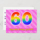 Framsidan av denna roliga, kärleksfulla och glada födelsedagsteman postkort visar ett stort nummer "60" med ett regnbågsspektrum-gradering inspirerat mönster. Den visar också meddelandet "Grattis på 60-årsdagen," och ett redigerbart mottagarnamn. Framsidan visar dessutom ett glatt ljust rosa och mörkt rosa randigt mönster med hjärtformer. Baksidan visar ett personligt födelsedagsgratulationsmeddelande, eller kan raderas och lämnas tomt om ett meddelande ska skrivas för hand istället. Ett födelsedagskort som detta kan vara ett roligt sätt att skicka födelsedagsönskningar till någon som firar sin sextioårsdag. Postkort som detta kan också användas för att inbjuda gäster till en födelsedagsfest som hålls för någon som