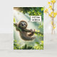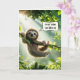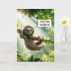 En söt sengångare hänger från en trädgren omgiven av frodiga gröna blad, med solljus som strömmar genom trädtaket för en 60-årsdag
