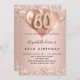 För en elegant på 60 år. En ro-guld tittar metallisk bakgrund. Dekorerad med ro guld, rosa faux glitte, gnistor och ballonger. Anpassa och lägg till information om namn och party. Namn är skrivet med ett handskript stil, nummer 60 med ballong stil typsnitt.