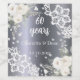 Etiketter för 60:e bröllop-årsdagen, diamant bröllop. En faux mörk silver tittar bakgrund som dekoreras med vita blommigtar, ro och snöre. Anpassa och lägg till namn och datum.