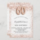 För en elegant på 60 år. En vit bakgrund. Dekorerad med ro guld, rosa faux glitter, gnistor. Anpassa och lägg till information om namn och party. Namn är skrivet med ett handskript stil, nummer 60 med ballong stil typsnitt.