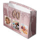 En presentpåse för en feminin och glamorös 60-årsdag. En rosa faux metallisk tittar bakgrund med faux glitter drops, färgdroppstift. Anpassa och lägg till tre foton och en namn. Nummer 60 skrivs med ett stil-teckensnitt med ballong. Perfekt som en festväska eller som en presentväska.