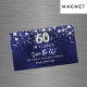Ett modernt och elegant Spara datum magneter för en 60:e födelsedagsfest. En marin blå bakgrund med faux silver-stjärnor. Anpassa och lägg till ett datum och namn. Den blå färg är ojämn. Texten: Spara datumet skrivs med ett stort trendig-handskript i stil.