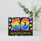 Framsidan av denna roliga, kärleksfulla och spännande födelsedagsteman postkortsdesign har en stor siffra "60" med ett regnbågsspektrum-gradering inspirerat mönster, tillsammans med meddelandet "Grattis på 60-årsdagen," och ett redigerbart mottagarnamn. Framsidan har dessutom ett färgrikt och livfullt kärleksfullt hjärtformigt bakgrundsmönster. Baksidan har ett anpassat födelsedagsmeddelande, eller kan rensas och lämnas tomt om ett meddelande ska skrivas för hand istället. Ett personligt födelsedagskort som detta kan vara ett roligt sätt att uppmärksamma någon på deras sextioårsdag. Postkort som detta kan också användas för att bjuda in gäster till en födelsedagsfest eller kalas som hålls för någon som