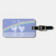 Bagagetagg med pastellbild av diamantliknande hjärtan flytande på vatten under en regnbåge.