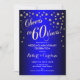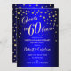 Inbjudan till 60-årsjubileum för bröllop. Tryckt inbjudan eller digital mall i safirblått och falskt glitter guld folie. Innehåller skrivstil och konfetti. Skål för 60 år! Perfekt för en elegant firande av 60 års äktenskap.