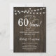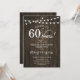 60-årsjubileum för bröllop Inbjudan. Rustik design med mörkt brun trästruktur och sträng med små lampor. Innehåller elegant typsnitt. Skål för 60 år! Kan anpassas till vilket äktenskapsår som helst! Meddela mig om du behöver ytterligare anpassning. Tryckta Zazzle-inbjudningar eller direkt nedladdningsbart digitalt mall. Perfekt för en stilig diamantjubileum på 60 år.