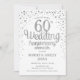 Inbjudan till 60-årsjubileum. Elegant inbjudningskortdesign i vitt med falskt silvermanuskript och konfetti. Perfekt för en stilig diamantjubileumsfirande