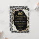 Rustik elegant design med svart-vit damastmönster, falskt glitterguld, typsnitt och vita rosor.