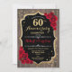60-års bröllopsjubileum inbjudan. Rustik elegant inbjudningskort med mörkt brunt trämönster, med falskt glitterguld och röda rosor. Tryckta inbjudningar eller digital mall. Perfekt för en stilig 60-års firande av äktenskapet.