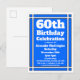 Skicka inbjudningar till ett 60-årsfirande med detta 60:e blå vykort för inbjudan till Geometric Birthday. Anpassad med dina personuppgifter och party.