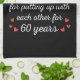 Utformning av roligten, perfekt för alla som varit gifta i 60 år och en förnyelseceremoni i bröllop. Det gör en underbar matchningsutrustning för par! Diamant? Vi förtjänar Platinum för att ha stått ut med varandra i 60 års citat för ett par som har gifte sig för 60 år sedan eller ett par som förnyar bröllop på sin diamantårsdag. Är du en romantisk make eller fru? Förstärka stil med den här konsten! Underbar gåva till din vän som har gifte sig för 60 år sedan, make eller hustru för 60 år sedan, eller pappa och mamma för att fira deras 60-årsjubileum bröllop.