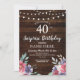 Rosa Flowers Rustic Wood Surprise party inbjudan med sträng ljus. Perfekt för alla åldersgrupper i födelsedagsfesten. ÄNDRA ENKELT TEXTEN TILL KOSTYM PARTY. Tillbakutskrift ingår