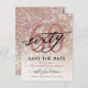 Modern chic sparar gigantiskt datumet för vykortet för 60-årsdagen. Konstruktion med champagne sparkly glitter struktur, ro guld 60 och kalligrafiskript 60. Anpassa med uppgifter om namn och party.