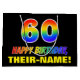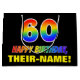 Denna roliga, roligt- och färgstarka födelsedagspressformgivning har ett stort nummer "60" och meddelandet "GRATTIS PÅ FÖDELSEDAGEN,", båda färgader med en regnbågsspektrumövertoning inspirerade mönster, tillsammans med en fet gult anpassade mottagare namn. Bakgrunden är svart på färgad. En sådan här presentpåse på roligtens födelsedag kan användas för att figurera en gåva eller present som ges för att fira någons sextioårsdag. [~Z0000477]