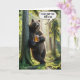 En björn står bara mot en träd som håller en mugg öl med en tass i en solbelyst sommarskog med en humoristisk tal-bubbla under 60 år. All text kan ändras och åldern ändras.