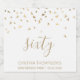 Hjälp henne att fira sin 60-årsdag i stil med den här enkla men elegant designen, med faux guld foil triangular konetti som sipprar ner på ord 60 i guld handskriftsteckensnitt på vit bakgrund. Anpassa den med namn i hedersteckensnittet i guld sans serif, tillsammans med tillfälle och datumet nedan i mindre guld.