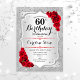 60:e födelsedagsinbjudan. Utformning av blommigt i elegant i silver och rött. Funktioner faux glitter silver rand, röd ros snyggt, skriptteckensnitt och konetti. Perfekt för en glam-födelsedagsfest.