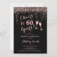 60:e födelsedagsinbjudan. Skål för 60 år! Utformning av eleganten i svart och ro guld. Innehåller champagneglas, typsnitt och konfekti. Perfekt för en snyggt sextionde födelsedagsfesten. Anpassa med dina egna detaljer. Kan anpassas för att visa vilken ålder som helst.