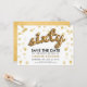 60:e födelsedagen i Guld-bubblor Glitter sparar da Inbjudningar