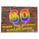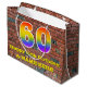 Den här färgstarka och livfulla presentsäcksdesignen, inspirerad av graffiti, har ett stort nummer "60" med en regnbågsspektrumövertoning inspirerad mönster. Det innehåller också budskapet "60-årsdagen Lycklig" och ett redigerbart namn. Den har också en tegelvägg stil mönster som bakgrund. En dylik presentpåse på födelsedagen kan vara ett roligt sätt att figurera en gåva eller present som ges för att fira någons sextioårsdag. [~Z0000522]