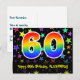 Framsidan av den här roligten, den spännande och färgstarka vykortsdesignen för födelsedagskalender har ett stort nummer "60" med en regnbågsspektrumövertoning som inspirerade mönster. Det innehåller också budskapet "60:e födelsedagen i Lycklig" och en redigerbar mottagare av namn. På framsidan finns dessutom färgstarka och klara stjärnformer i bakgrunden mönster. Baksidan innehåller ett hälsning-meddelande från anpassningsbarnas födelsedag, eller så kan det kanske rensas och lämnas tomt om ett meddelande ska skrivas för hand i stället. Ett sådant här vykort för anpassadets födelsedag kan vara ett roligt för att erkänna någons sextioårsdag. Sådana vykort kan också användas för gäster från inbjudan till en födelsedagskalender eller för att hålla party för någon som blir 60 år gammal. [~Z0000447]