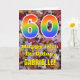 Framsidan av den här färgstarka, rustiska och höstledda hälsningskortet har ett stort nummer "60" med en regnbågsspektrumövertoning som inspirerade mönster. Det innehåller också budskapet "60-årsdagen Lycklig" och personligen namn. Bakgrunden till kortets framsida har en kraftig nedgång i höst löv mönster. Insidan innehåller ett hälsning-meddelande från anpassningsbarnas födelsedag, eller kan kanske tas bort och lämnas tomt om ett meddelande ska skrivas för hand i stället. Ett sådant här födelsedagskort i anpassadet kan vara ett roligt för att skicka önskemål till någon som firar sin sextioårsdag. [~Z0000384]