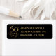 60:e födelsedagsfestens returadressetikett i svart och guld.