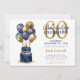 Den här fantastiska inbjudan till marinblå tårta i manar på 60:e födelsedag med två lagrar blått och guld med marinblå ballonger och guld och nummer 60 i guld skulle vara perfekt för att fira din make, bror, pappa, vän, morbror, farfar. Det är traditionellt och klassiskt samtidigt som det är färskt, modernt och contemporary. Baksidan är en samordnande marin blå folie.