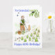 Ett 60:e födelsedagskort för en farfar med en man som njuter av att lyssna på födseln medan man klipper med grönsaksplåstret. Katten tittar på och fjärilarna har kom ut i solsken, från en vattenfärgsmålning av Judy Adamson. (Övriga åldrar och familjemedlemmar finns tillgängliga på begäran.)