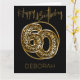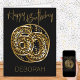 Personlig 60 födelsedagskort med fotopiloner i svart och guld. Trendigets leopardballonger är inramade med svart och guld konetti och Grattis på födelsedagen är handskrivet i guld. Mallen är ett redo för dig att anpassa kortets framsida och lägga till ett meddelande inuti - eller så kan du lämna insidan tom om du föredrar att skriva vid ankomsten.