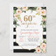 60:e överraskande Black White Rand Blommigt födels Inbjudningar