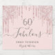 Enkel märkning och elegant 60-årsstämpel för vin. En feminin ro guld, rosa, dekorerad med ro guld faux glitter droppar, färgdroppstift. Med texten: 60 och fantastisk. Anpassa och lägg till ett namn och ett datum. Födelsedatum eller datum för party. Grått text. Ord Fabulous är skriven med ett modernt handskript i stil med dekorationer.