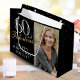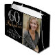 60 och Fabulous Elegant Black 60 Birthday Photo Gift Bag. 60 och fantastisk text i trendiget skript med namn på svart bakgrund. Anpassa den med foto, namn och ålder. Det är en underbar personlig fotopresentpåse för en kvinnas födelsedag.