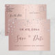 Ett feminin och glamoröst Spara datumkortet i 60 års ålder i 60 födelsedagsfester. En feminin rosa, ro guld faux metallisk tittar bakgrund dekorerad med faux ro guld diamant sprinkle. Mallar för ett datum och din text. Mörk ro guld färgad brev. Texten: Spara datumet skrivs med ett stort trendig-handskript i stil. Baksida: ro guld bakgrund och diamanter. Mallar för information om party. Svart text.