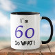 60 Så vad Roligt Inspirerande 60-årsdags Kopp En fantastisk födelsedagspresentidé för någon som firar 60-årsdagen. Den kommer med ett roligt och inspirerande citat Jag är 60 så vad och är perfekt för en person med humor.