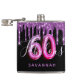 För ett modernt trendig och 60:e födelsedagsfesten. En svart bakgrund för klassisk elegant. Med texten: 60 Fabulous. Anpassa och lägg till ett namn. Vit och lila färgad text. Ord Fabulous är skriven med ett modernt handskript i stil. Ålder 60 skrivs med ett skript för ballong stil.