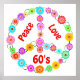 kärlek för 1960-talet med den här söten återdesignen med ett fredstecken av blommor och ord - 60-talet för fred Kärlek. Underbar gåva till ett 60-tal-musik i älskare.