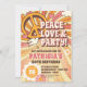 60-talsinbjudan - Långt ut, gräv oss komma ur 60-talets partiinbjudan. Med psykodeliskt färg och ett mellangärde fredstecken. Bara perfektens inbjudan att visa alla din fria hippieanda vet fortfarande hur man får en groove på. Ha en gas och glöm inte att låta din freak flagga flyga. Groovy man! Fred, Kärlek och Party!