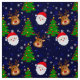Lycklig jultomten, renar, dekorerade julgran och snö, julklummet mönster