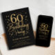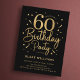 60th birthday party invitation in black and gold. Trendy modern design, perfect for a stylish men's or women's bday celebration. Features script font and confetti. Customize with your own details. Printed Zazzle invitations or instant download digital printable template.