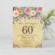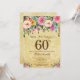 Inbjudan för födelsedag för guld- överrrakning för glitter blom- 60th för kvinnor. Blom- blomma för vattenfärg. Guld- glitterbakgrund. Rosor gult, orange, lilablomma. Vuxen födelsedag. 13th 15th 16th 18th 20th 21st 30th 40th 50th 60th 70th 80th 90:e 100., något åldras. Behaga klickar "skräddarsy den" knäppas och använder vårt designverktyg för att ändra denna mall för mer ytterligare customization.