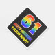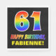 Den här roligten, färglös och rolig papper napkindesign har ett stort nummer "61" och meddelandet "GRATTIS PÅ FÖDELSEDAGEN,", båda färgader med en regnbågsspektrumövertoning som inspirerade mönster, tillsammans med en djärv gult redigerbar mottagare av namn. Bakgrunden är svart på färgad. Roligt, redigerbar födelsedag som pappra blöjor av det här slaget kan användas vid någons sextioårsfirande. [~Z0000476]