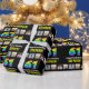 Denna glatta och feta födelsedagstext med papper design har ett stort nummer "61", med ett regnbågsspektrum som inspirerar mönster, tillsammans med meddelandet "Lycklig 61:a födelsedagen" och en personlig mottagare av namn. Det finns också några foton som kan vara personlig, kanske med foton av mottagaren, mottagarens familj och vänner och/eller mottagaren/avsändarna av presenten. Att packa pappert som detta kan vara ett roligt för att packa en födelsedagspresent eller gåva till någon som firar sin sextioförsta födelsedag. (Photography © Storytree Studios, Stanford, CA.) [~Z0000670]