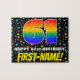 Den här roligten och den populära utformningen av pusslet med pussel i pusslet i pusslet har ett stort nummer "61" med ett flerfärgat regnbågsspektrum som inspirerat mönster, tillsammans med meddelandet "LYCKLIG 61:a BIRTHDAY," och anpassadet namn. Bakgrunden har en fet, flerfärgad stjärna i mönster. Ett sjudande födelsedagspressel i anpassadet som detta kan vara ett roligt sätt att skicka födelsedagstävlingar till någon som firar sin sextioförsta födelsedag. [~Z0000607]