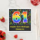 Den här roligten, den levande och färgstarka pappra napkindesignen på födelsedagen har ett stort nummer "61" med en regnbågsspektrumövertoning som inspirerade mönster. Det innehåller också budskapet "Lycklig 61:a födelsedagen" och ett anpassade namn. En del av bakgrunden har ett färglöst musik noter och symbolerna mönster. På födelsedagen kan sådana pappra blöjor användas när man firar en musikers, en sångares, en kompositörs eller någon annans 61-årsdag. [~Z0000421]