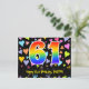 Framsidan av denna spännande, färgglada och kärleksfulla födelsedagskortdesign har en stor siffra "61" med ett regnbågsspektrum-gradering-mönster, tillsammans med meddelandet "Grattis på 61-årsdagen", och ett personligt mottagarnamn. Framsidan har dessutom ett livfullt och färgglatt mönster av kärleksfulla hjärtan. Baksidan har ett anpassat födelsedagsmeddelande, eller kanske kan rensas och lämnas tom om ett meddelande ska skrivas för hand istället. Ett personligt födelsedagskort som detta kan vara ett roligt sätt att skicka ett meddelande för att fira någon som fyller 61 år. Postkort som detta kan också användas för att bjuda in gäster till en födelsedagsfest eller firande som hålls för någon som