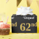 Den här sofistikerade, snyggt- och lyxfärgade pappra designen har ett stort ordnummer "62:a" som har ett utseende som liknar guld och som påminner om faux/imitation, tillsammans med hälsning-födelsedagsmeddelandet "Lycklig 62:a födelsedagen" och en namn som tar emot anpassningsbar i ett skript-stil-teckensnitt. Den har också en bakgrund med svart färgad. Sofistikerad födelsedagstext papper som denna kan användas när en gåva eller present i firande på någons 62-årsdag är ge. [~Z0000515]