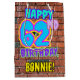 Framsidan av den här roligtens födelsedag: presentsäcksdesignen innehåller meddelandet "LYCKLIG 62ND BIRTHDAY", som har ett färgstarkt, dynamiskt, graffiti-inspirerat utseende, förutom ett anpassningsbar-mottagare namn. Bakgrunden är en mönster som inspirerats av en tegelvägg. En presentpåse som denna kan användas när man slår in gåvor som ges till någon i firande på deras 62-årsdag. [~Z0000536]