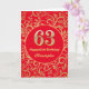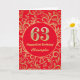 63:e födelsedag Röda och Guld-Blommönstret Kort